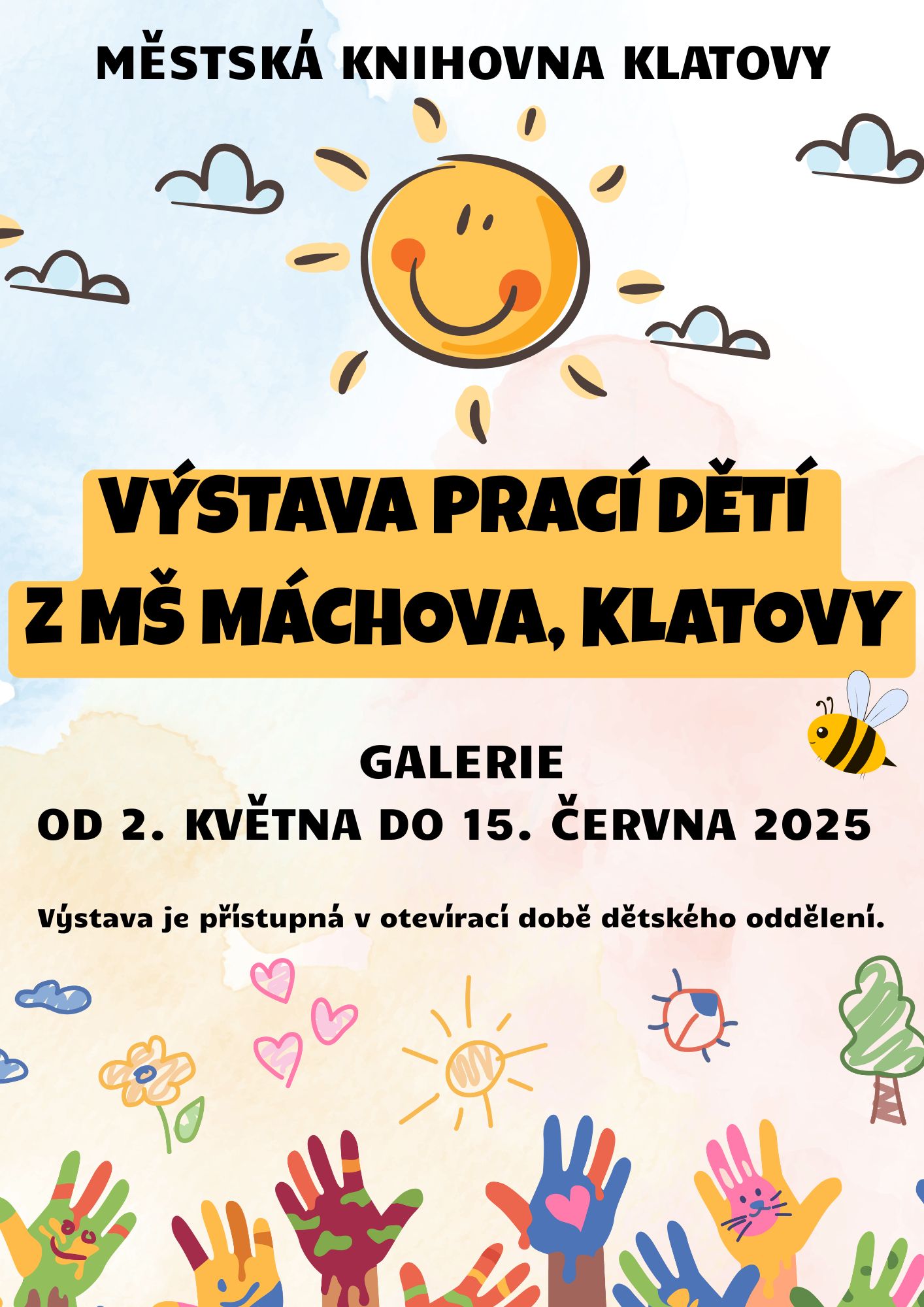 Dětské oddělení Městské knihovny Klatovy vyhlašuje výtvarnou soutěž na téma ZEMĚ PŘÍBĚHŮ. Nakreslit můžete vše, co jen souvisí s knížkou a čtením (oblíbená postava, svět, bájné zvíře...). Obrázky (A4 nebo A3) odevzdávejte do 13. února v dětském oddělení. Zúčastnit se mohou všichni, kdo rádi malují bez rozdílu věku. Na zadní stranu obrázku napište jméno autora, věk, kontakt a souhlas zákonného zástupce s vystavením práce (v případě, že je účastník mladší 18 let). Na všechny výtvarníky čeká sladká odměna. (Zapsal: Městská knihovna Klatovy, 19.12.25) | ||